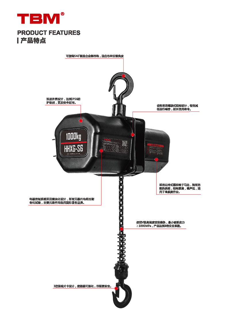 可靠性,上、下都有極限開關(guān)裝置,微動開關(guān)反應(yīng)速度短,能快速有效地止動,防止鏈條超出,確保安全。